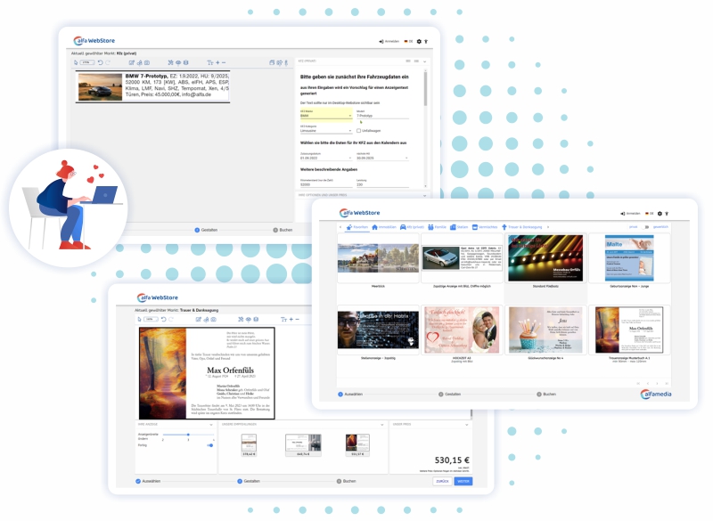 The WebStore is available around the clock, seven days a week, and its responsive design makes it easy to place advertisements on all mobile devices. Whether on a smartphone, tablet or laptop, it only takes a few clicks to place an advertisement. Of course, the WebStore has an interface that enables barrier-free access and use.